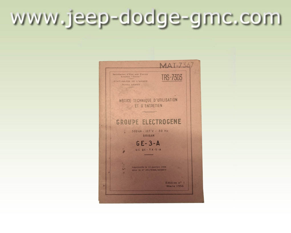 | TRS_7303 | Notice technique d utilisation et d entretien Groupe Electrogene BRIBAN GE-3-A |