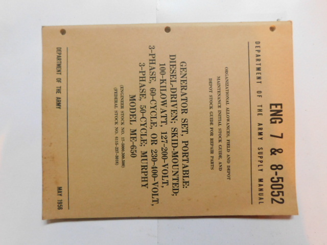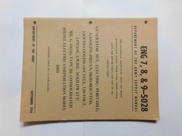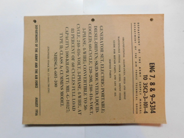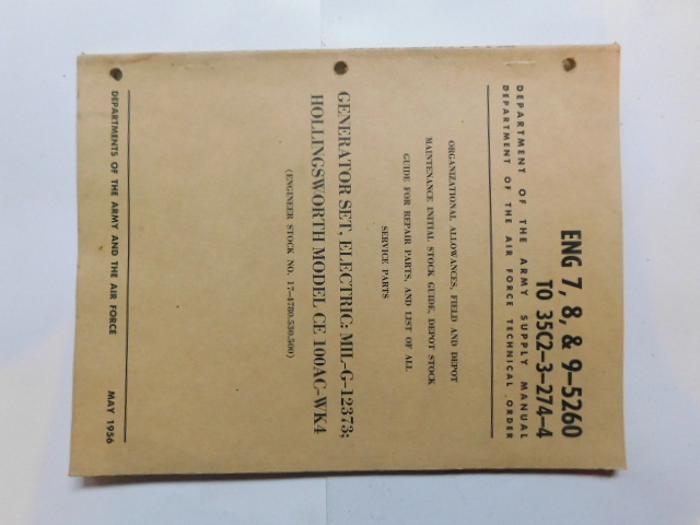 | ENG_7_8_9_5260 | Generator Set, Elec. MIL-G-12373, HOLLINGSWORTH CE 100AC-WK4, May 1956 |
