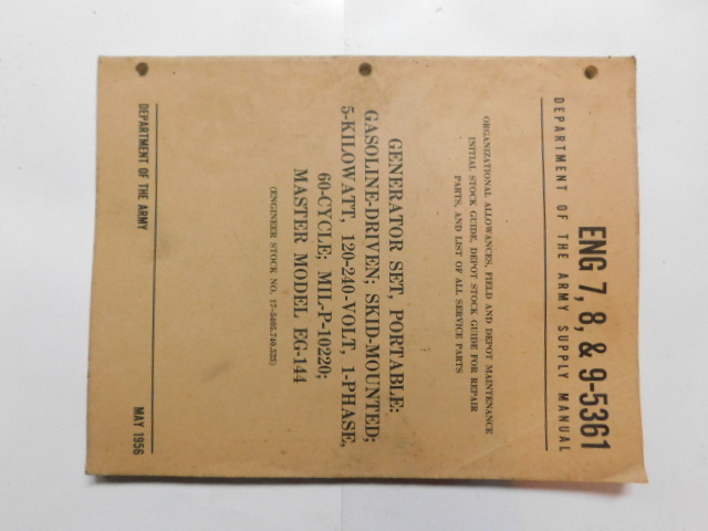 | ENG_7_8_9_5361_COP | Generator Set, portable GAS-Drive Skid-MTD MASTER Model EG-144, May 1956 (copie) |