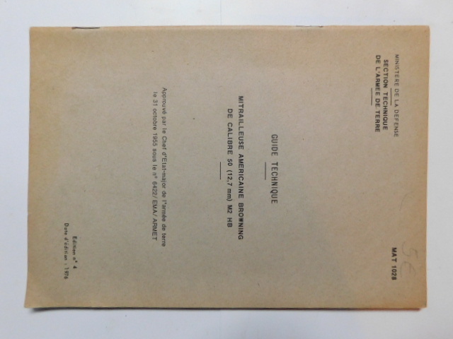 | MAT_1028_COP | Guide Technique, Mitrailleuse Americaine BROWNING Cal 50, M2 HB, 1976 (copie) |