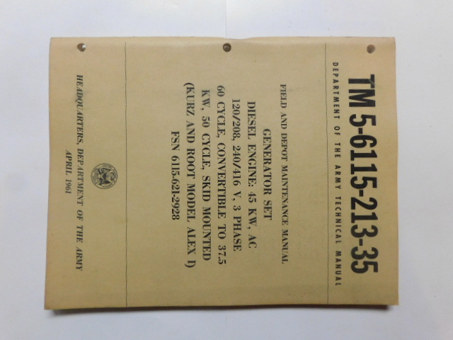 | TM5_6115_213_35_1961 | Manuel Techique, Generator Set, KURZ and ROOT Model ALEX I, April 1961 |
