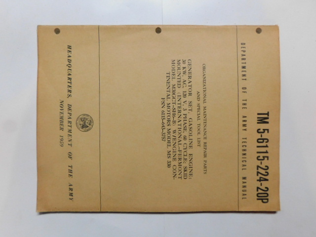 | TM5_5007 | Manuel Technique Generator Set Electric Portable Diesel Driven Skid Mounted 1955 |