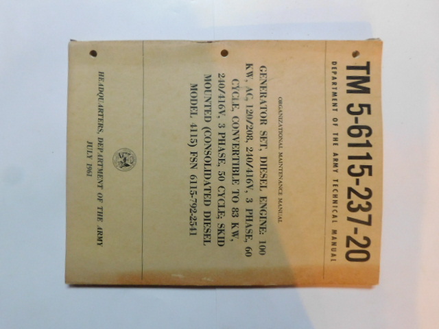 | TM5_6115_237_20_COP | Manuel Technique Generator Set CONSOLIDATED DIESEL Model 4115, July 1961 (copie) |