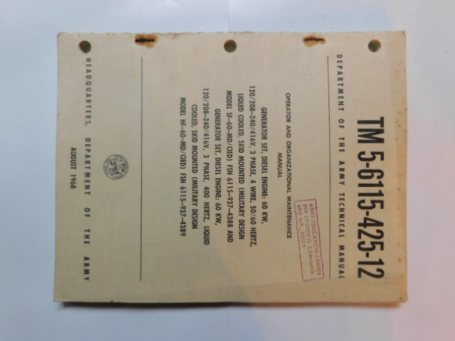 | TM5_6115_425_12_COP | Manuel Technique Generator Diesel Engine 60KW MILITARY DESIGN August 1948(copie) |
