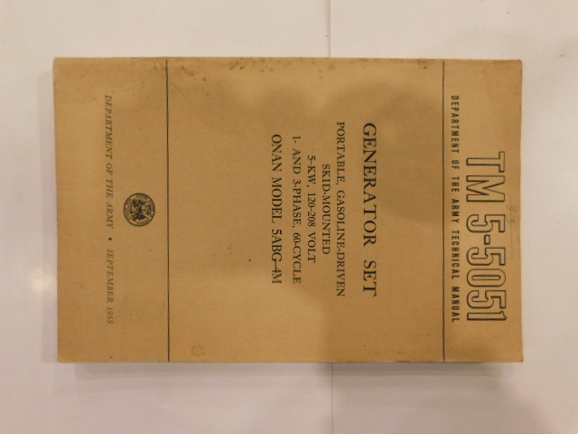 | TM5_5051 | Manuel Technique Generator Set Portable GAS Driven Skid Mounted ONAN 5ABG4M 1955 |