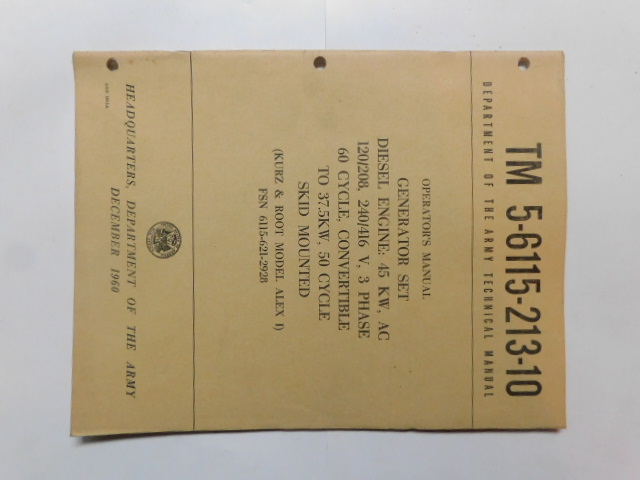 | TM5_6115_213_10_COP | Manuel Technique Generator Set KURZ and ROOT Model ALEX I, December 1960 (copie) |