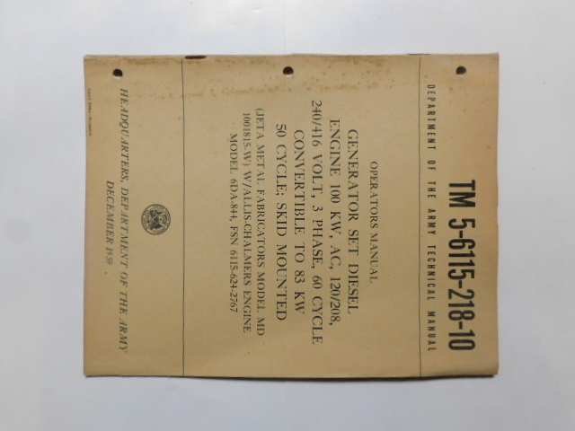 | TM5_5161 | Manuel Technique Generator Set Portable Diesel Driven Skid Mounted BUDA 48DG-182 |