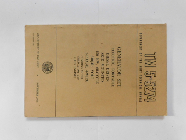 | TM5_5274 | Manuel Technique, Generator Set, CUMMINS Model NHRSGA-601-150, November 1956 |