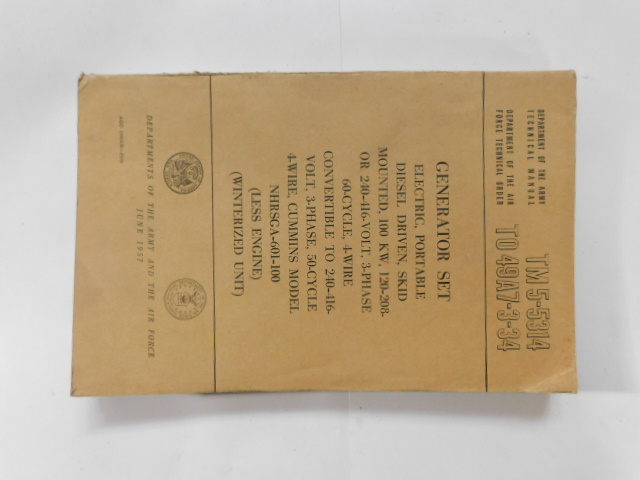 | TM5_5314 | Manuel Technique, Generator Set, CUMMINS Model NHRSGA-601-100, June 1957 |