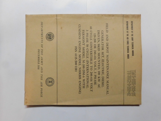 | TM5_6115_292_15 | Manuel Technique, Generator Set, CUMMINS Model NVH-12-G-150 KW-AC, February 1961 |