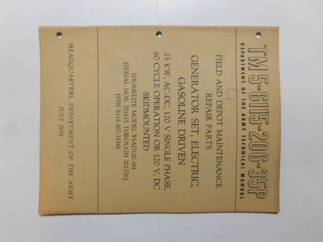 | TM5_6115_206_35P_COP | Manuel Technique, Generator Set, HOMELITE Model 15AD120-16, July 1958 (copie) |