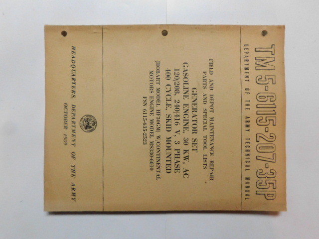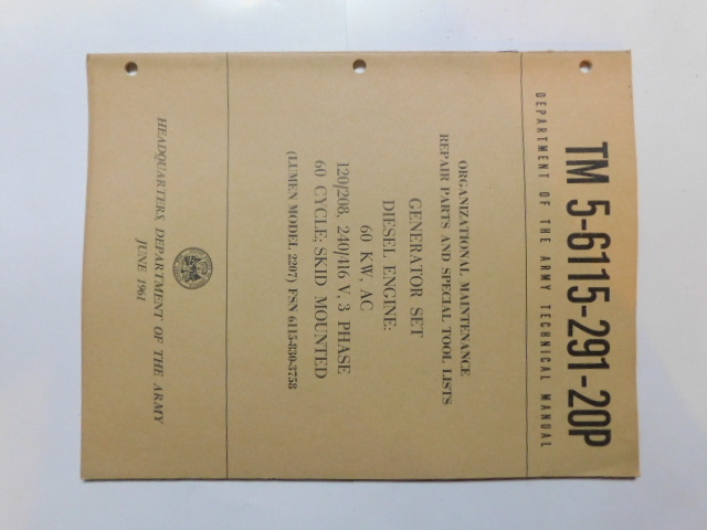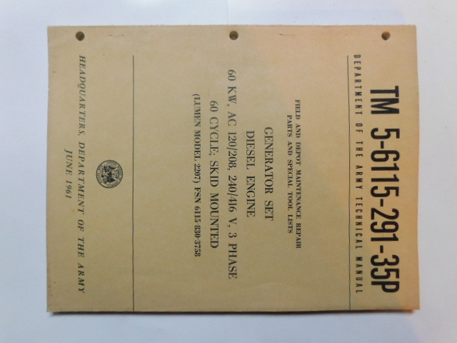 | TM5_6115_291_35P | Manuel Technique, Generator Set, Diesel Engine, LUMEN Model 2207, June 1961 |