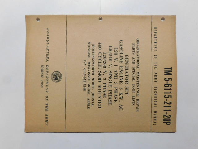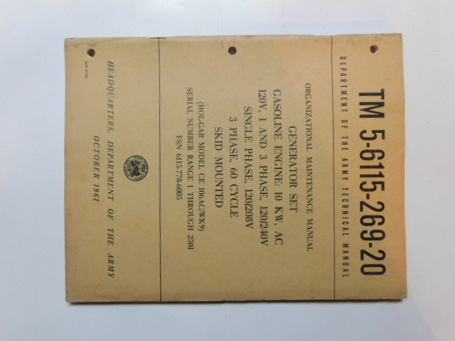 | TM5_6115_269_20 | Manuel Technique, Generator Set, HOL-GAR Model 106AC/WK9, October 1961 |
