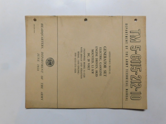 | TM5_6115_212_10 | Manuel Technique, Generator Set, Electric, GED, WINPOWER Model G-1528, June 1958 |