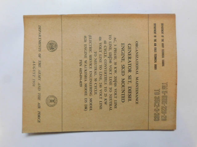| TM5_5038 | Manuel Technique, Generator Set, Diesel Driven, CATERPILLAR D397, August 1955 |