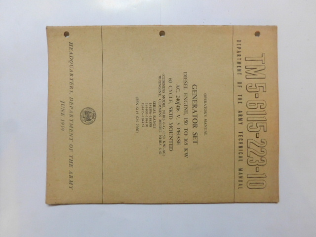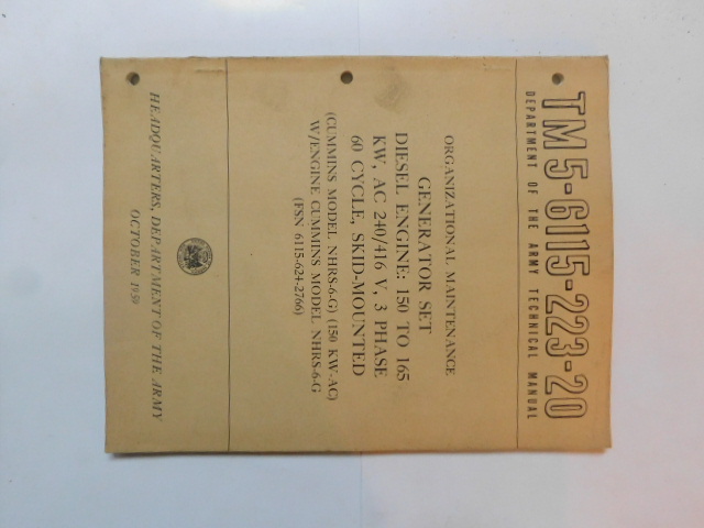 | TM5_6115_223_10 | Manuel Technique, Generator Set, Diesel Engine, CUMMINS Model NHRS 6G, June 1959 |