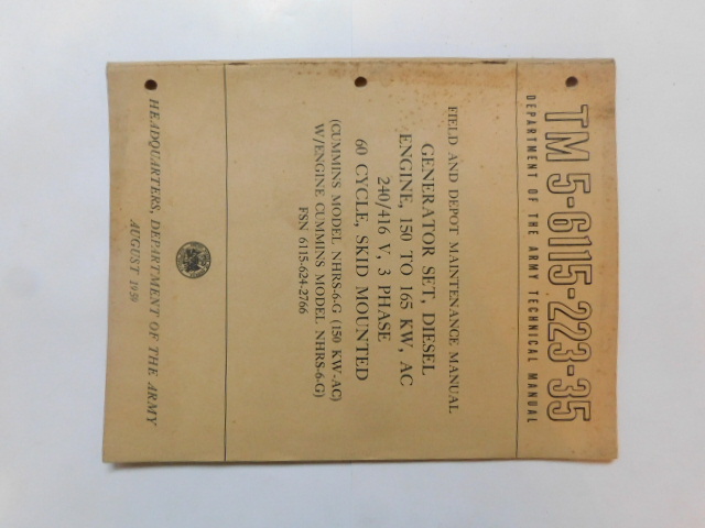 | TM5_6115_223_35 | Manuel Technique, Generator Set, Diesel Engine, CUMMINS NHRS6G, August 1959 |
