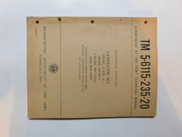 | TM5_6115_235_20 | Manuel Technique, Generator Set, CONSOLIDATED DIESEL Model 4060, February 1960 |