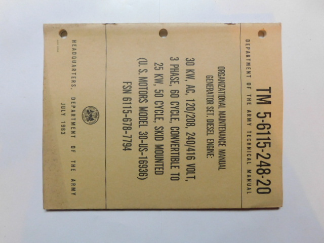 | TM5_6115_248_20_1963 | Manuel Technique, Generator Set, Diesel Engine, US MOTORS 30-US-16936, July 1963 |
