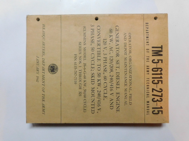 | TM5_6115_273_15 | Manuel Technique, Generator Set, CUMMINS JS-6-G-60 KW 50/60 Cycle, January 1962 |