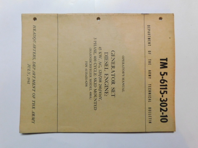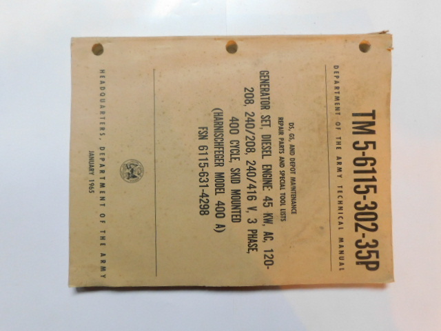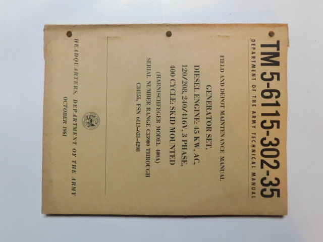 | TM5_6115_302_35 | Manuel Technique, Generator Set, Diesel Engine, HARNISCHFEGER 400A, October 1961 |