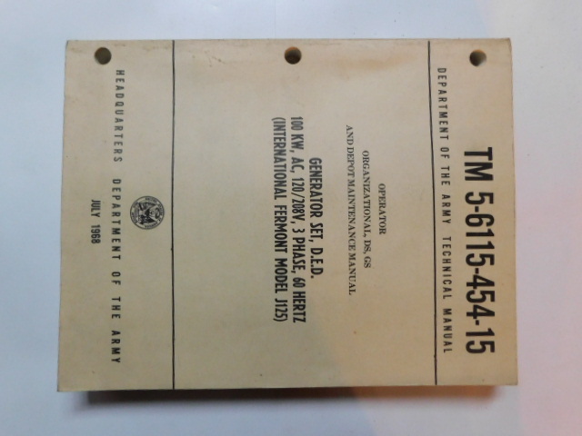 | TM5_6115_203_20 | Manuel Technique, Generator Set, INTERNATIONAL-FERMONT Model M100DM, July 1958 |