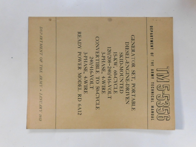 | TM5_5356 | Manuel Technique, Generator Set, Ready Power Model RD 6A12, January 1953 |