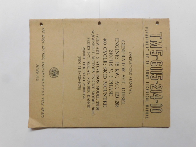 | TM5_6115_214_20 | Manuel Technique, Generator Set, STEWART AND STEVENSON 28100, September 1959 |