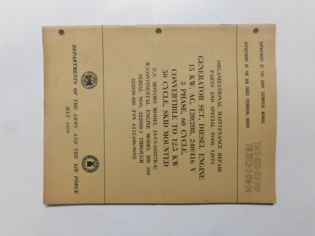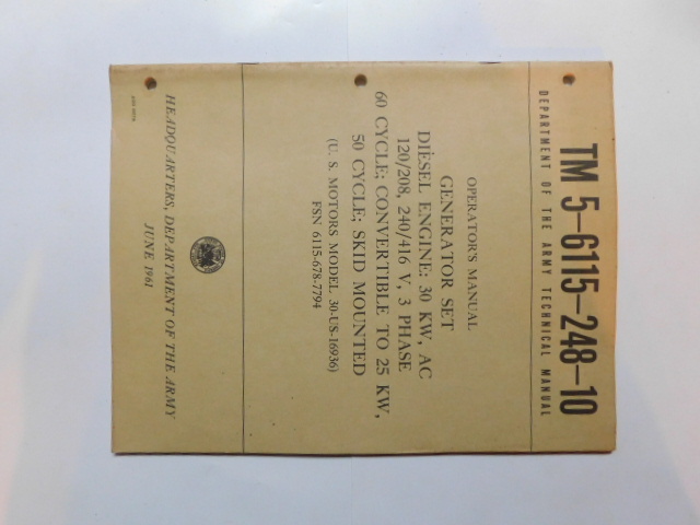 | TM5_6115_248_20_1961_COP | Manuel Technique, Generator Set, U.S MOTORS 30-US-169336-1, August 1961 (copie) |