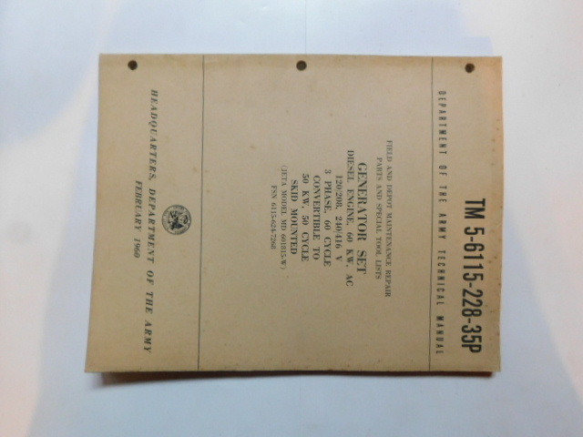 | TM5_6115_218_35 | Manuel Technique, Generator Set, JETA METAL FABRICATORS MD1001815W, January 1960 |