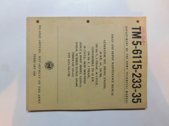 | TM5_6115_233_35 | Manuel Technique, Generator Set, KRUZ and ROOT Model CLEO-1, February 1962 |
