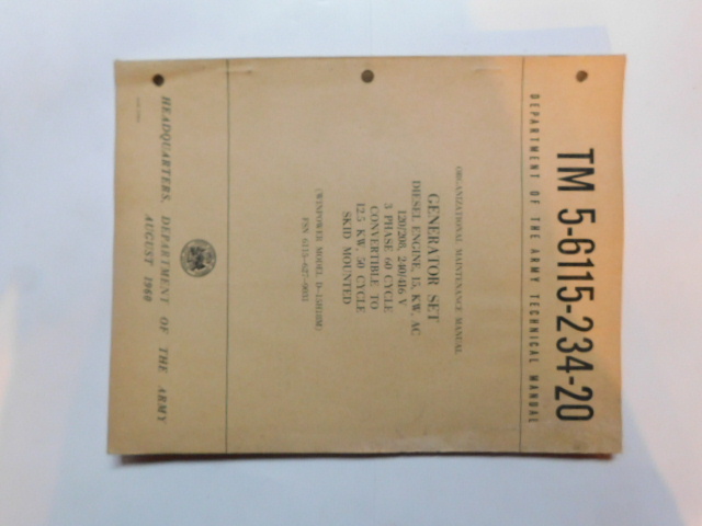 | TM5_6115_234_20 | Manuel Technique, Generator Set, WINPOWER Model D-15H18M, August 1960 |