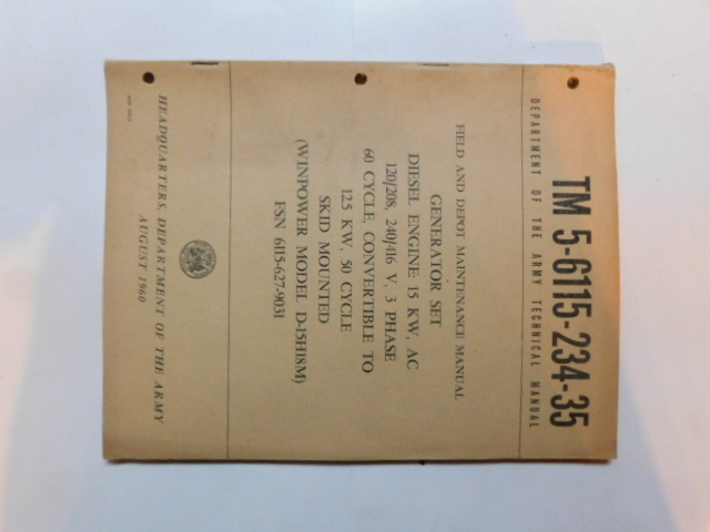 | TM5_6115_234_35 | Manuel Technique, Generator Set, WINPOWER Model D-15H18M, August 1960 |