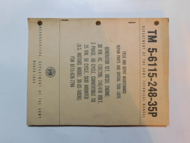 | TM5_6115_248_35P_1962 | Manuel Technique, Generator Set, U.S. MOTORS Model 30-US-16936, February 1962 |