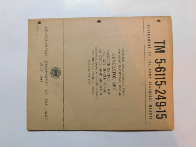 | TM5_6115_249_15 | Manuel Technique, Generator Set, WINPOWER Model G-1536ASE-2A016-1, July 1960 |