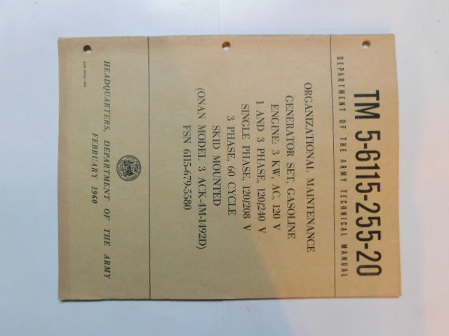 | TM5_6115_255_20_COP | Manuel Technique, Generator Set, ONAN Model 3 ACK-4M1492D, February 1960 (copie) |