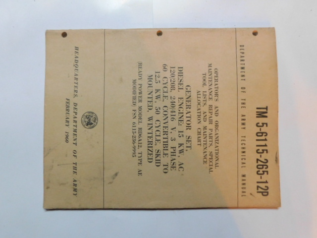 | TM5_6115_265_35P_COP | Manuel Technique, Generator Set, READY POWER RD6A12 Type AE MOD. , 1960 (copie) |