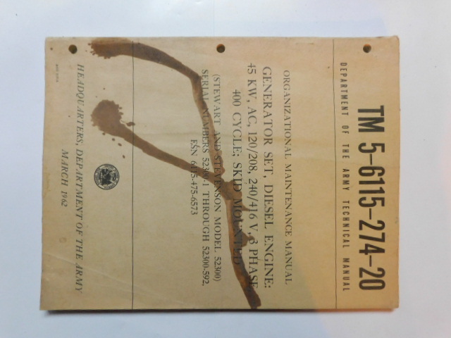 | TM5_6115_274_20_COP | Manuel Technique, Generator Set, STEWART and STEVENSON 52300, March 1962 (copie) |