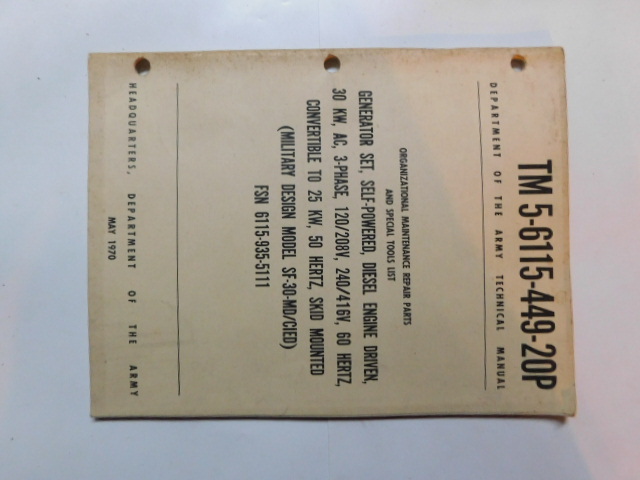 | TM5_6115_449_20P | Manuel Technique, Generator Set, MILITARY DESIGN Model SF-30-MD/CIED, May 1970 |