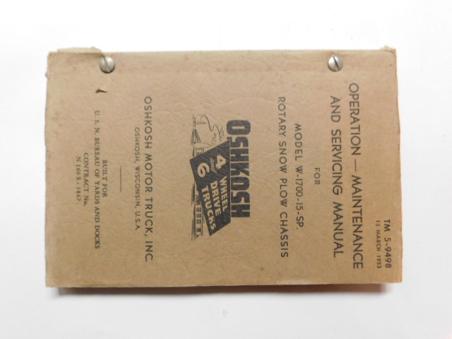 | TM5_9498 | Manuel Technique, Model W-1700-15-SP. Rotary Snow Plow Chassis, March 1953 |
