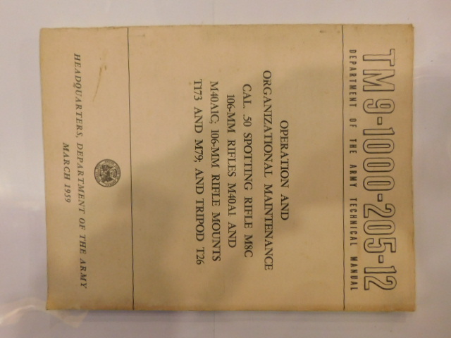| TM9_1000_205_12 | Manuel technique, Cal.50 Riffle M8C 106-mm M40A1 M40A1C, Mounts T173 M79, T226 |