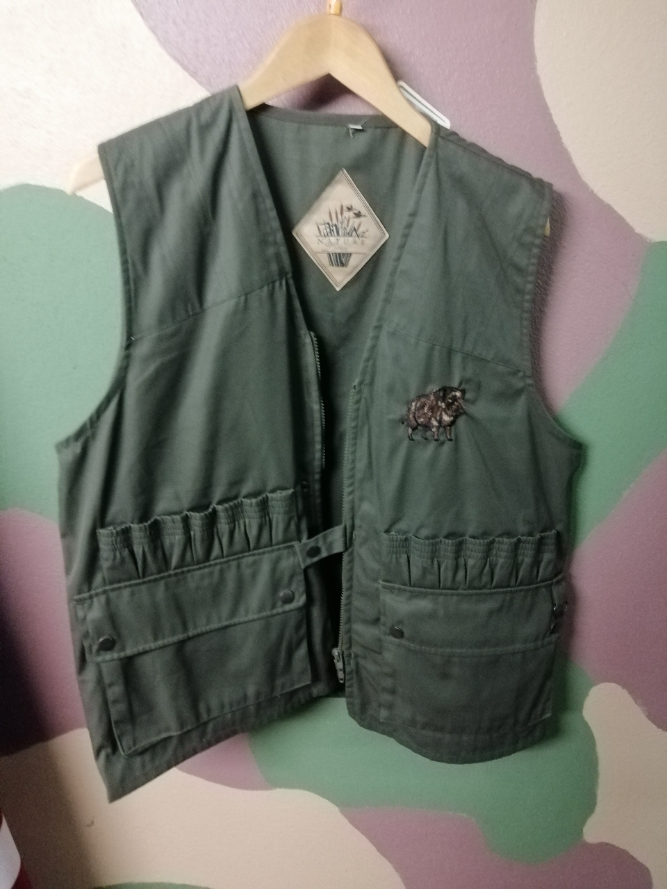 | VSMCV0009 | BLOUSON SANS MANCHE CHASSE VERT avec cartouchière blason sanglier |