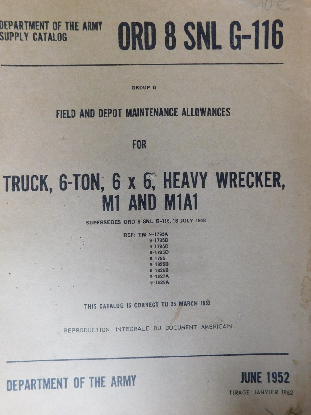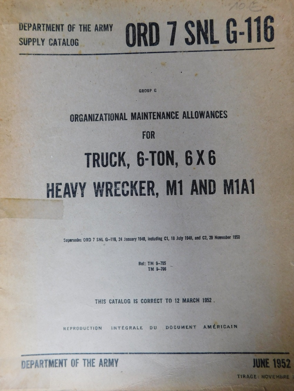 | SNL_G116_ORD_9_COP | Catalogue de pieces, WARD LAFRANCE, 10-ton, 6x6 Truck, Heavy Wrecker M1 (copie) |