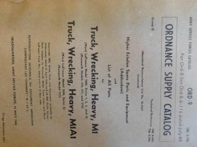 | SNL_G116_ORD_9_COP | Catalogue de pieces, WARD LAFRANCE, 10-ton, 6x6 Truck, Heavy Wrecker M1 (copie) |