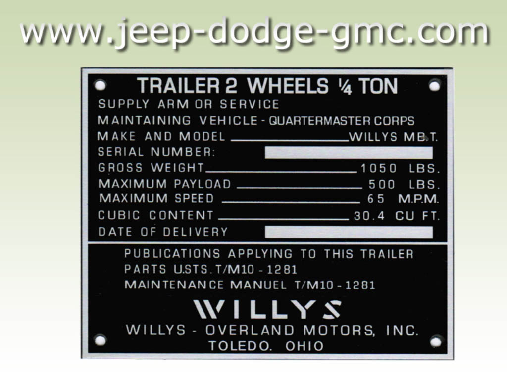 | WOA6431W | PLAQUE INSTRUCTION REMORQUE 1/4 TON WILLYS |