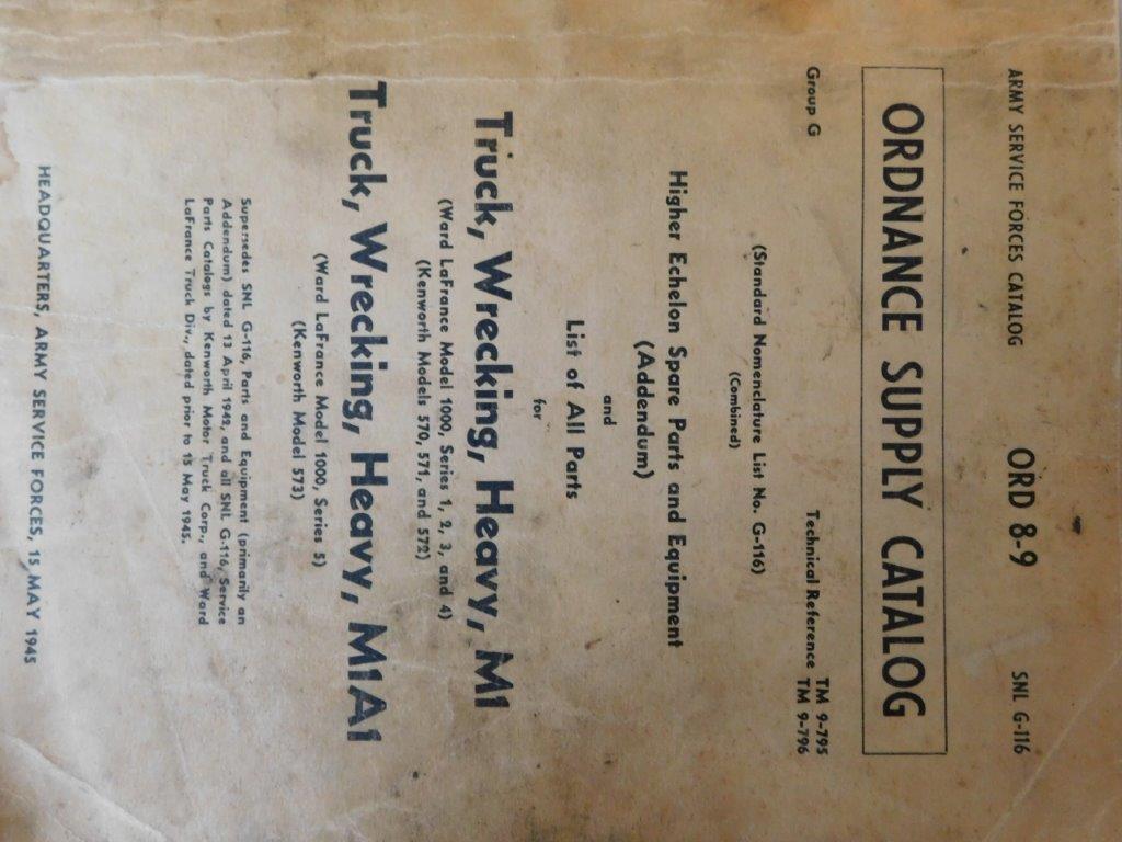 | SNL_G116_ORD_8 | Catalogue de pieces WARD LAFRANCE, 10-ton, 6X6 Truck, Heavy Wrecker, M1 et M1A1 |
