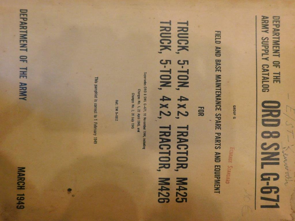 | SNL_G671_ORD_8_1949_COP | Catalogue de pieces INTERNATIONAL Truck 5ton 4x2, Tractor M425 M426 1949 (copie) |