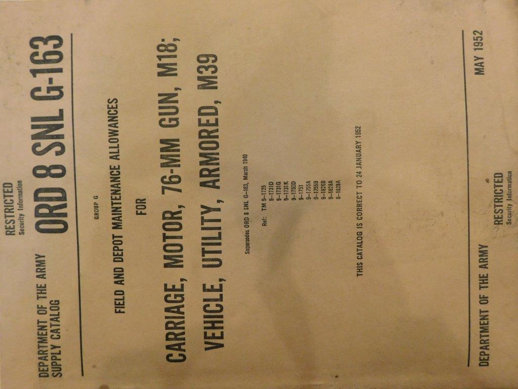 | SNL_G163_ORD_8 | Catalogue de pieces, BUICK, Carriage, Motor, 76-mm gun, tank destroyer M18, M39 |