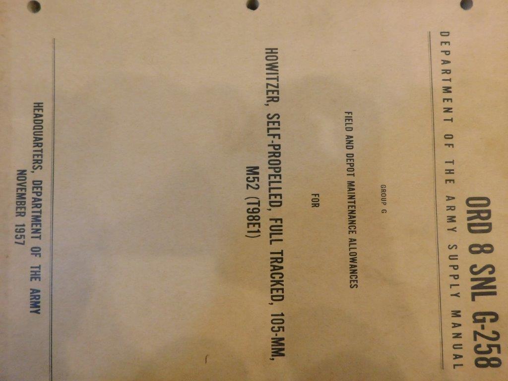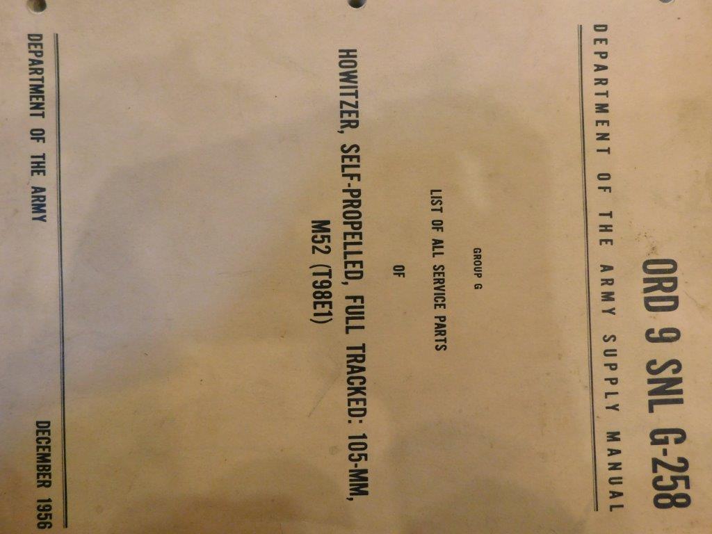 | SNL_G258_ORD_9 | Catalogue de pieces, Carriage, Motor, self propelled, 105-mm HOWITZER, M52 |