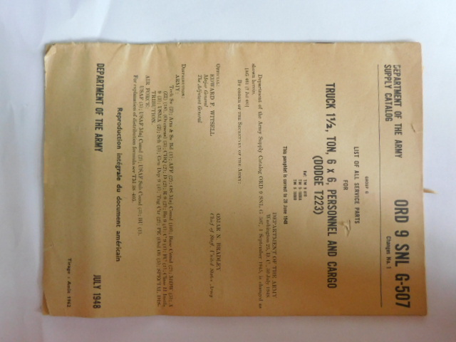 | SNL_G507_ORD_9_1948 | Catalogue de pieces, DODGE Truck 1 1/2-ton 6x6, Personnel and Cargo (T223), 1948 |